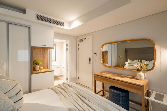 Generously sized Superior rooms with a sofa and lounge area. Remodelled bathrooms and a separate toilet area and shower. Patios overlooking the indigenous garden or the pool. King or ¾ Twin Beds