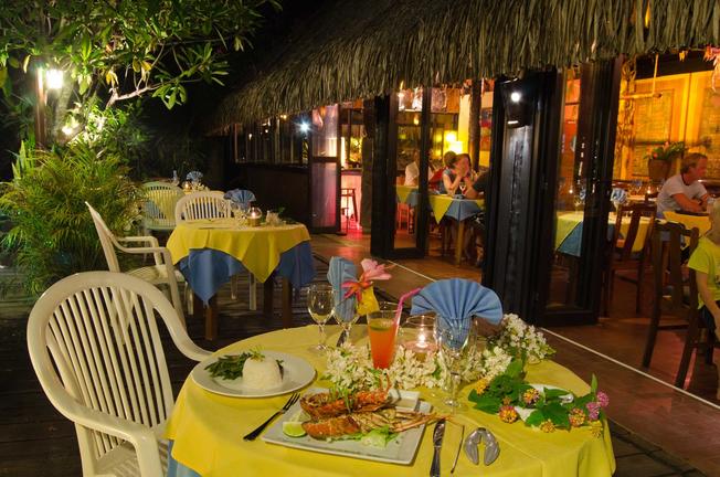 Le Garden Restaurant & Bar est ouvert tous les jours pour le dîner de 18h30 à 21h15 et propose un large choix de spécialités locales françaises et italiennes. Parmi les plus populaires sont : la fameuse sauce Mahi & vanille, l'agneau au fromage de chèvre ou leur délicieuse soupe de légumes maison.