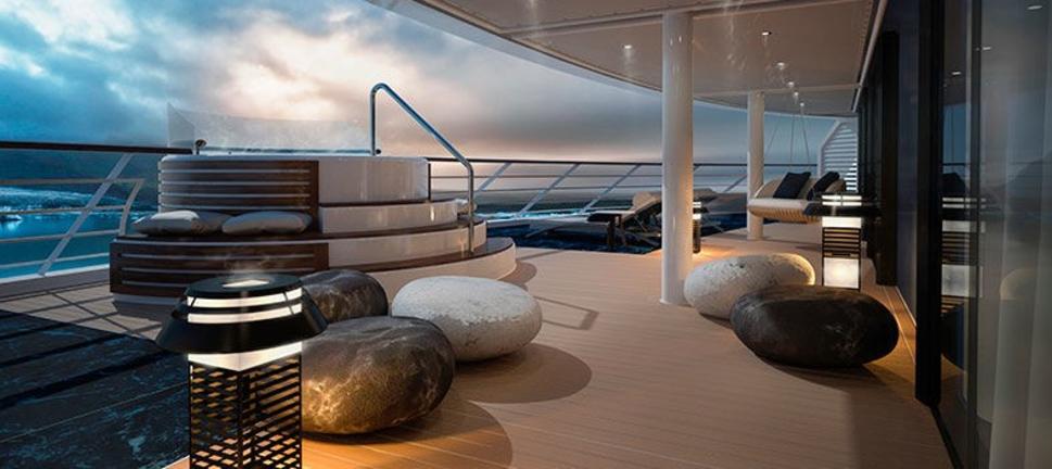 Las suites y camarotes del barco presentan un diseño elegante y cuentan con balcón privado. Algunas suites cuentan con baño en las habitaciones y jacuzzi en el balcón, mientras que todas las opciones incluyen servicio de habitaciones las 24 horas, conexión Wi-Fi y TV vía satélite.