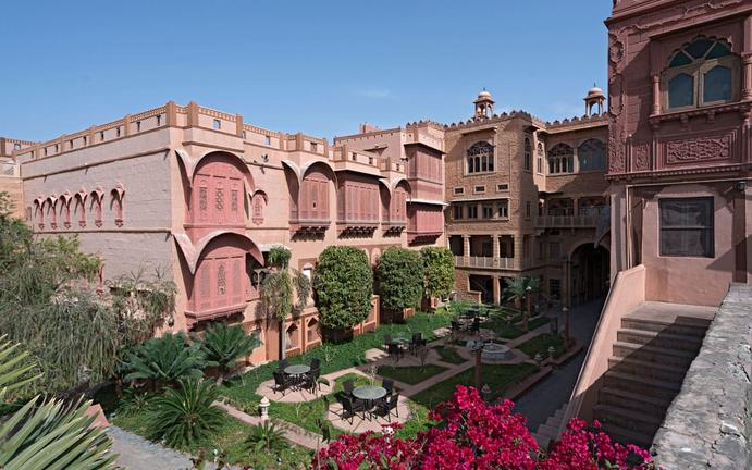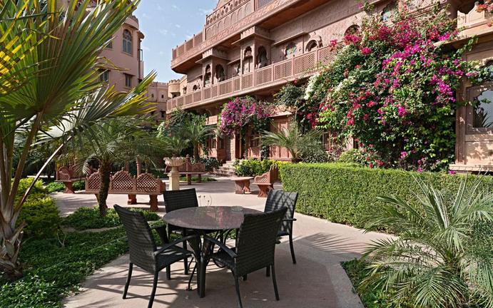 Nestled in the heart of Jaisalmer, Rajasthan, Fort Rajwada is a regal heritage hotel that blends traditional Rajputana architecture with modern luxury. The lavish rooms and suites feature antique furnishings, panoramic desert views, and contemporary amenities designed for comfort and elegance. Guests can indulge in diverse dining experiences across various venues, including the rooftop Sunset Bar, Roopal Restaurant, and Sonal Restaurant, each offering regional and international cuisine in opulent settings. Additional facilities include a serene swimming pool, Rohira Spa, fitness centre, meeting rooms, and expansive courtyards, making it an ideal retreat for leisure and cultural immersion.