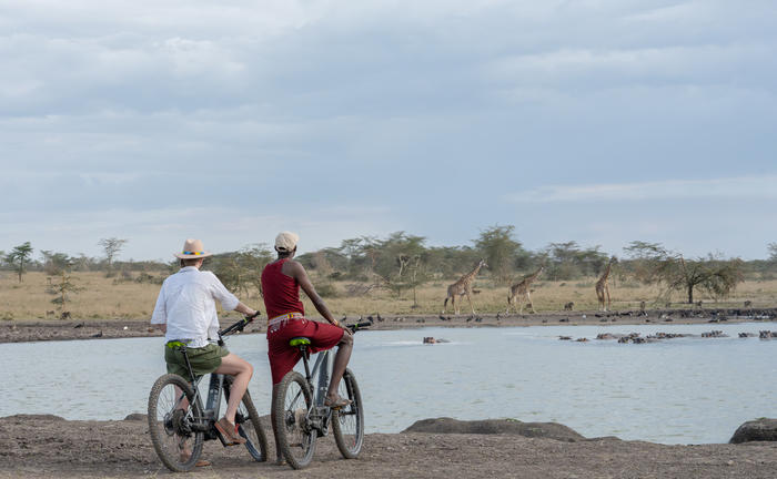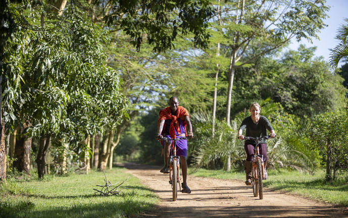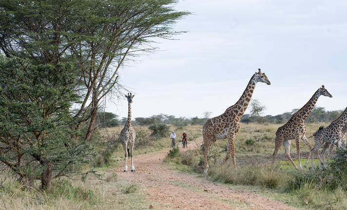 Ride alongside the giraffe and zebra of Naretoi, or venture down to the Mara Training Centre where you can visit the Wild Shamba or see the women beading. Or explore the nearby villages and farmland, often greeted by children who'll run alongside your bike with huge smiles!