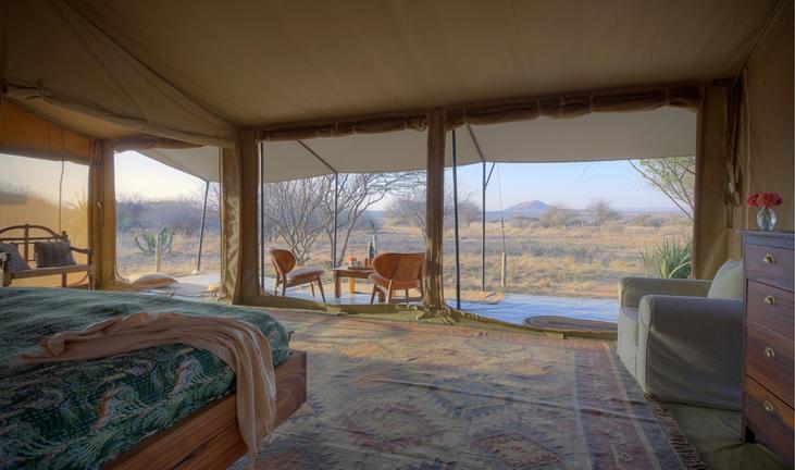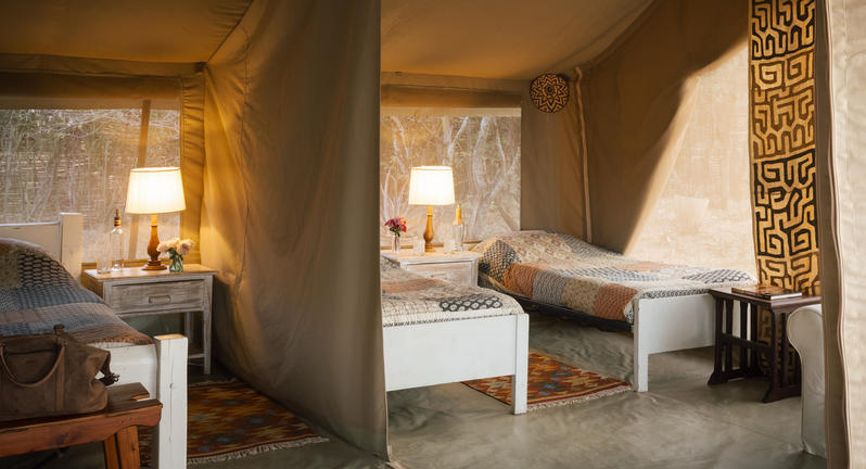 Tumaren Camp is perfectly situated on the edge of a wide sweeping plain with panoramic views dotted with the iconic acacia tree. To the south, the landscape is defined by granitic inselbergs, rising up like islands on the savanna.