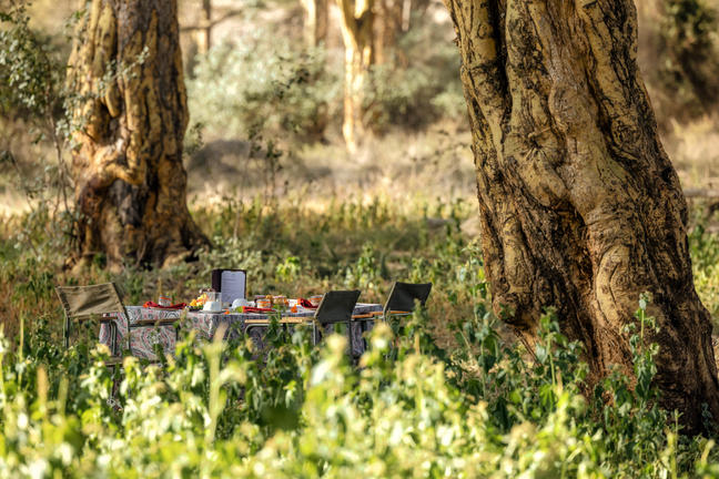 Set on the edge of a plain with long, panoramic views toward Mt. Kenya and the Aberdare Range to the south, Nyarara Camp is aptly named after the Maasai word for "cheetah," as these magnificent animals are often seen in the area.