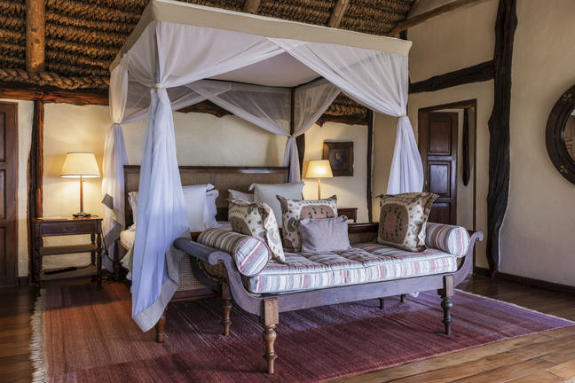 The property luxuriates in total exclusivity with five charming thatched cottages tucked away in an oasis of vibrant lawns, filled with birdsong. All have well-appointed bedrooms, with sumptuous four-poster beds and generous en-suite bathrooms.