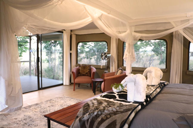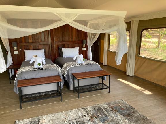 Imaginez-vous en train de vous réveiller au son de la symphonie de la nature, votre tente en toile offrant une vue imprenable sur la vallée de Chamabondo et son point d'eau. C'est votre escapade exclusive au cœur du parc national du Zambèze, un paradis préservé par le temps.
