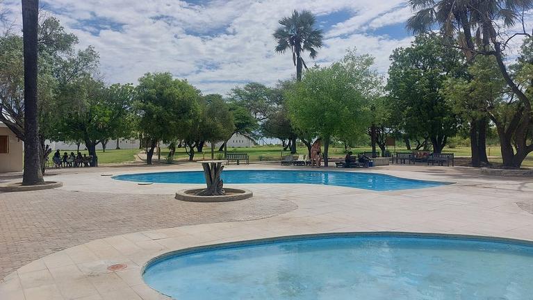 At a roofed bar guests can order drinks, snacks and meat for barbecue and make use of the plugs for recharging cellphone and camera batteries. There is a swimming pool and a view point overlooking the Kalahari bush savannah. Free WLAN is available at the main reception (5 min walk).