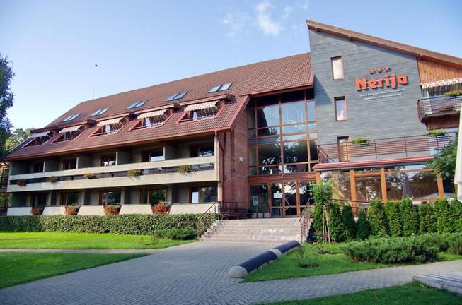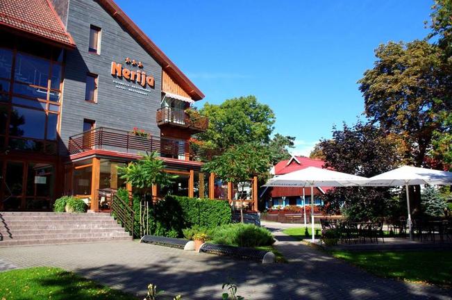 Das Hotel Nerija befindet sich in einer sehr ruhigen Gegend im Zentrum von Nida, einem Ferienort in Litauen. Das Hotel verfügt über 57 komfortable, gemütliche Zimmer und Apartments, von denen die meisten mit Klimaanlage und Balkon ausgestattet sind. Die Apartments und ausgewählte Zimmer verfügen zudem über eine Miniküche. Das hoteleigene Restaurant befindet sich auf der ersten Etage und bietet seinen Gästen ein ruhiges kulinarisches Erlebnis im Schatten der Pinien. Zu den Sehenswürdigkeiten in der Nähe des Hotels gehören das Museum Hermann Blode, die Bernsteingalerie, das Ethnographische Fischermuseum und das Thomas Mann Museum.