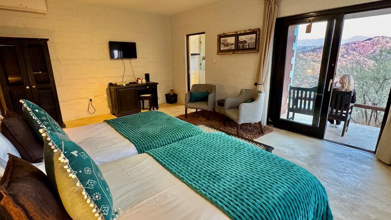 The Superior Accommodation units at Sossusvlei Lodge feature a patio to enjoy views over the Desert landscapes, a spacious air-conditioned twin-bedded room and a full en-suite bathroom. The Standard Family Units feature two rooms back to back connected by a lockable inter-leading door between the two private bathrooms. An elegant Junior Suite boasts a spacious bedroom, living area, patio with a splash pool, large bathroom and inspiring views.