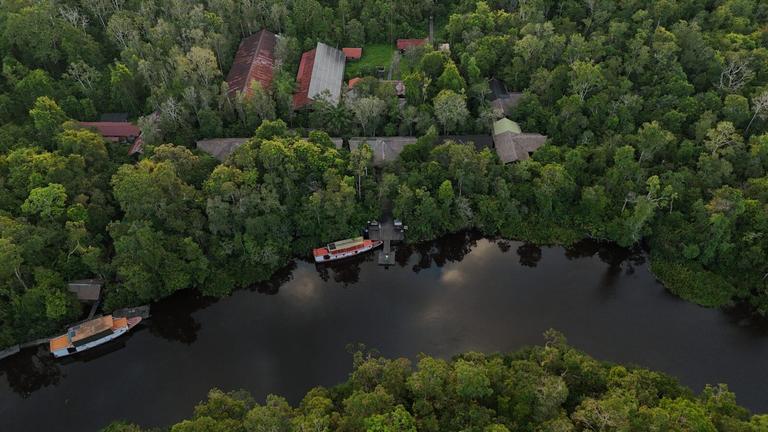 El Rimba Orangutan Ecolodge está situado en la localidad de Sekonyer, que sirve de puerta de entrada al parque nacional Tanjung Puting. El albergue ecológico ofrece habitaciones diseñadas para ofrecer comodidad y, al mismo tiempo, mantener una conexión con la selva tropical circundante, y cuenta con porches privados que permiten a los huéspedes disfrutar de las vistas y los sonidos de la naturaleza. El restaurante del hotel ofrece comidas con ingredientes de origen local, lo que complementa la experiencia inmersiva. Los visitantes pueden explorar el parque nacional, que alberga una fauna diversa, como orangutanes y otros primates. El albergue ecológico también cuenta con pasarelas que conectan los alojamientos con los espacios comunes, lo que mejora la sensación de estar dentro del entorno forestal.