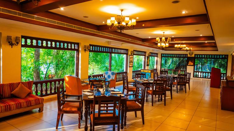 The Poovar Island Resort is surrounded by serene backwaters and opens out to the Arabian Sea with a sandy beach. The resort is set on 25 acres of coconut gardens and has sea and backwater facing cottages and villas built around the swimming pool. Poovar Island Resort is accessible only by a 10-minute boat ride on the river.