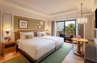 LIGGING I Aan de rand van een rustig strand tussen Cha-Am (15 min.) en Hua Hin (10 min.) • Pendeldienst (betalend) naar het geanimeerde centrum van Hua Hin. FACILITEITEN I Grote tropische tuin • 2 zwembaden en poolbar • Zonneterras met ligstoelen en parasols • Spa • Winkeltjes • Babysitting • Laundry service KEUKEN I Europese en Aziatische keuken, zeevruchtenbarbecue en Italiaanse specialiteiten. SPORT I Tennis • Fitness • Aerobics • watersporten (naargelang het seizoen) en golf in de omgeving