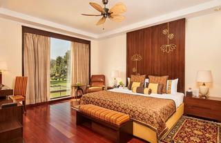 A refreshing view of the hotel’s azure swimming pool greets guests when they stay in a Deluxe Pool View Room. Thoughtfully appointed with modern amenities such as complimentary high speed internet, an LCD television and a personal bar, the rooms at the hotel in Agra also feature traditional, Mughal-style touches in the wall art panels and beautiful, ornamental side lamps. The ensuite bathroom has a bathtub and a shower, and offers soft, fluffy bathrobes and luxury bath amenities by Kama.