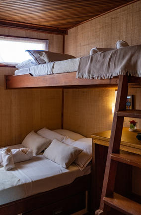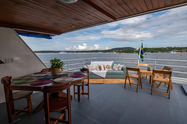In the large, well-distributed areas of the boat, you can have good convivial moments or more privacy while enjoying the pampering and attention from a team specialized in making your experience of navigating through the Amazon rainforest memorable.