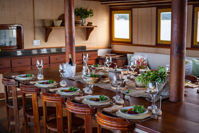 This 96-foot locally-built boat was exquisitely renovated, with attention to the finishes and adaptations to improve comfort and coziness while maintaining its authentic characteristics.