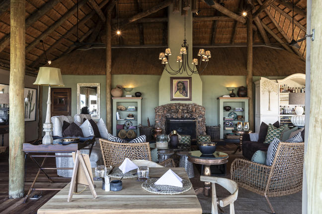 A Camelthorn pod-shaped lapa encompasses the reception area, curio shop, a cosy lounge area with inside and outside fireplaces, a restaurant and dining area. A secluded swimming pool invites to refresh and relax. Each luxury chalet offers unrestricted views of the savannah. Each chalet has an open-air sala with a semi-detached lounge area complete with a minibar, tea/coffee station. The highlight for any bird lover is the birdbath in front of each chalet and bird-feed. Wifi and cell phone reception are available.