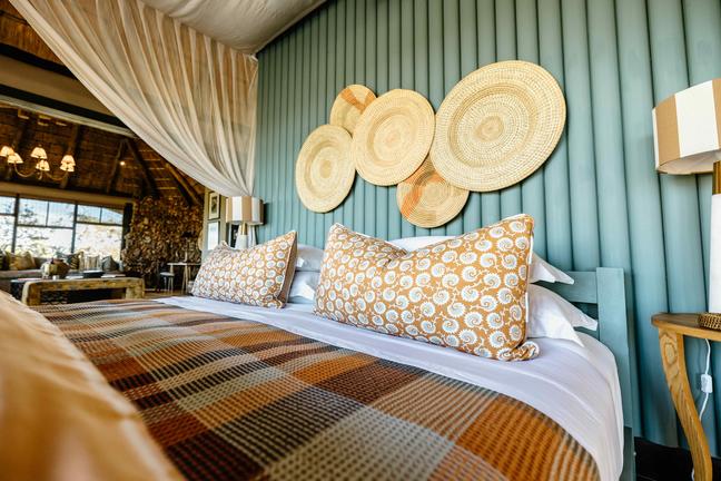 The Luxury Bush Camp consists of eight safari-chic chalets, each with its own ‘sala’, a Junior Suite, a lounge and dining area with earthy tones and African design elements with amazing views over a waterhole in the lush savanna landscape.