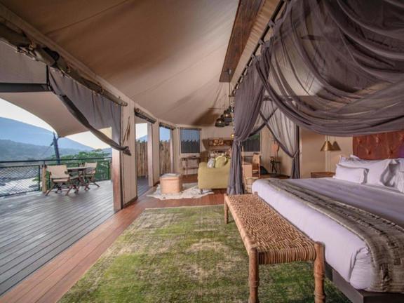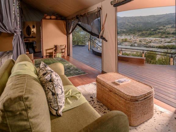 Indulge in ultimate luxury in one of the seven exquisite tents at Madwaleni River Lodge. Each tent features a private heated plunge pool, indoor and outdoor lounges with breathtaking wilderness views, and sophisticated copper bathroom fixtures. Air-conditioned rooms come equipped with iPads for seamless food and beverage orders, ensuring a comfortable stay.