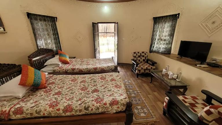 Kutch Safari Lodge is situated on the outskirts of Bhuj in Gujarat, India, near the White Rann of Kutch and the Rudramata Dam. Accommodation options consist of well-appointed cottages with tea/coffee makers, air conditioning, private bathrooms, toiletries, TVs, and cosy beds. A hearty breakfast is served daily. Facilities and services include parking, a restaurant, a swimming pool, and Wi-Fi.