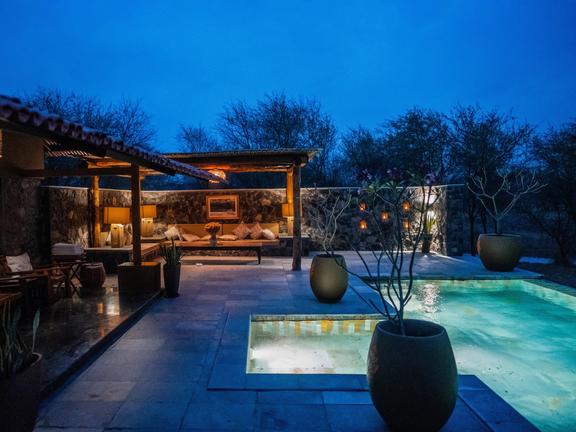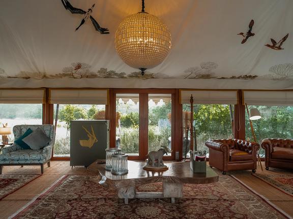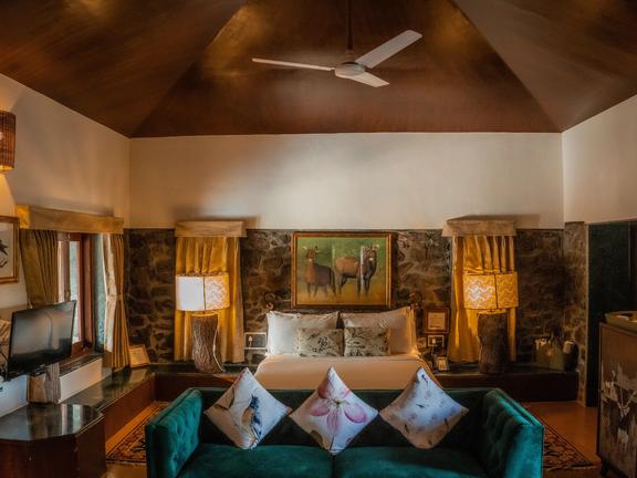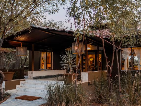 The Blackbuck Lodge is a luxury wildlife lodge set amid the golden grasslands of Blackbuck National Park near Velavadar in Gujarat, India. Guests stay in ultra-luxe cottages and villas with modern interiors and amenities designed for comfort and convenience. The lodge features a sophisticated multi-cuisine restaurant serving Indian, Continental and Chinese dishes, including vegan options, in both indoor and starlit outdoor settings. Guests can enjoy guided safaris through the grasslands, starlit Kathiawadi dinners by a bonfire, and the lodge’s signature romantic bush dinner experience.