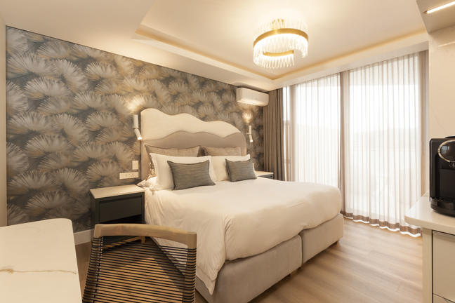 The Superior Sea Facing Suites are larger in size when compared with the sea facing suite. Located on either the top level of the hotel or on the corners. Each suite is elegantly furnished with an extra-length king-size bed and lounge area.