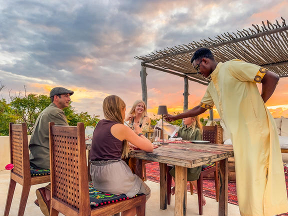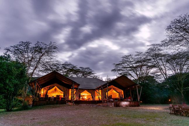 Måltidene inntas i det stilige fellesteltet, og mellom safariaktivitetene kan dere slappe av i den komfortable salongen eller på den private verandaen til teltet deres. Før og etter middag samles dere rundt bålplassen og lar en innholdsrik dag avsluttes med en forfriskende drink og historiefortelling – omgitt av de lyden av Afrika.