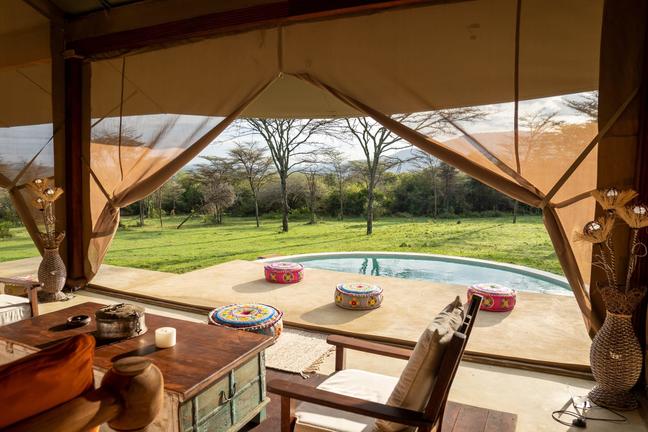Safaritelt, luksussuite og privat villa, som smelter vakkert inn i området og den uberørte naturen rundt hovedbygningen, tilbyr også enestående utsikt over det spektakulære landskapet og den ugjennomtrengelige villmarken over Mbulia Conservancy-slettene som strekker seg så langt øyet kan se.