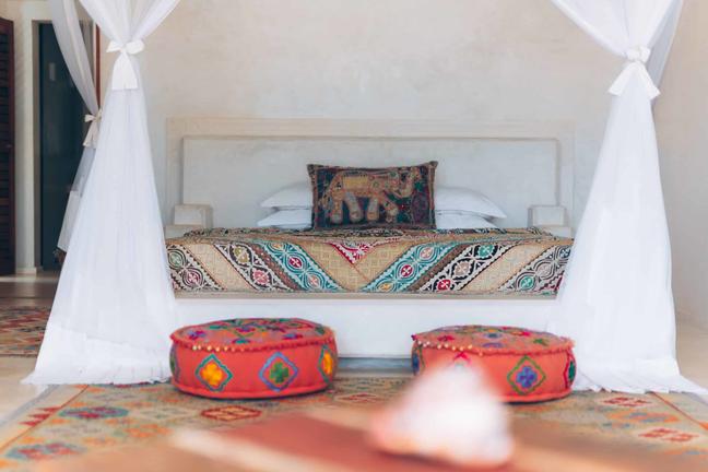Innredningen gjenspeiler naturen i omgivelsene, gamle swahili-teksturer og former. Kombinert med moderne afro-chic design og hjertevarm service, opplever gjestene ekte barfot-luksus. Hele komplekset vender mot det glitrende turkise vannet i Det indiske hav, hvis farger gjenspeiles i de nøye utvalgte dekorative elementene.