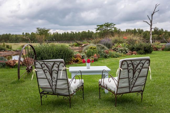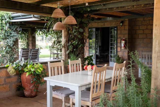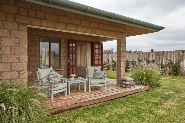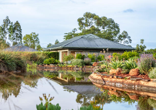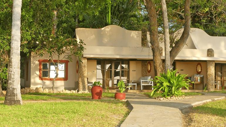 De rotstuinen zijn voorzien van vibrerend gekleurde bloemen, die een mooi contrast geven met het groen van de goed verzorgde gazons. Apen spelen op de gazons en verschillende soorten vogels chip in de bomen. Paden wind tussen de open gazons en frangipanis, met aloes en proteas groeien in overvloed. De acaciabomen zijn overvloedig in dit gebied en bieden welkome schaduw. De stenen buitenmuren van de huisjes worden in de kamers gedragen. De kamers op de begane grond hebben twee queensize bedden en een verzonken woonkamer aan de voorzijde, die uitkomt op de prachtig verzorgde gazons.