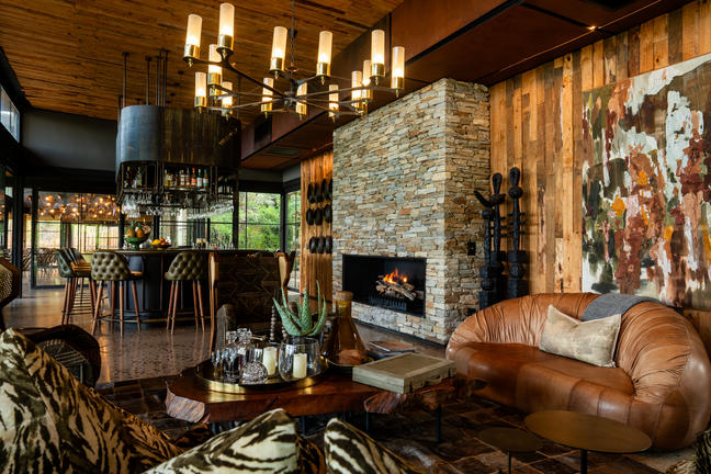 commissioned oil painting of Nelson Mandela in the entrance lounge. Inside, a cozy fireplace and sophisticated interiors lead to a sumptuous bedroom with a well-appointed bathroom. Outdoors, a terrace lounge and dining area, Jacuzzi, and sun loungers provide a private sanctuary of relaxation. With 150m² of indoor and outdoor space, this suite combines opulence, elegance, and a profound sense of place.