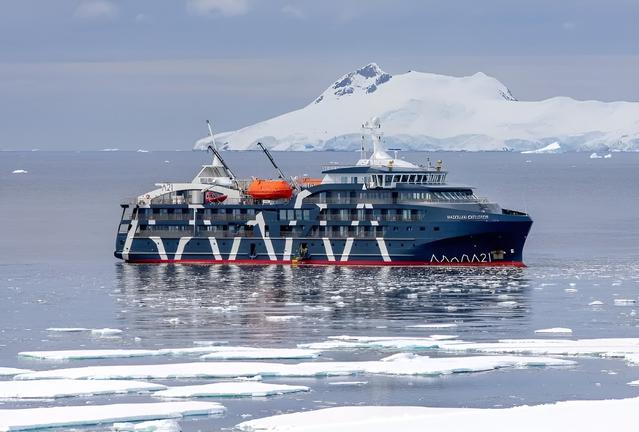 Magellan Explorer is a modern expedition vessel purpose‑built for Antarctic air‑cruises, designed to meet the latest Polar Code specifications. It accommodates up to 76 guests on air‑cruises and offers seven cabin categories, each featuring a wardrobe, individually controlled heating, comfortable seating, and a private bathroom with a shower and heated floors. Onboard, guests enjoy panoramic lounges, a glass-enclosed observation area, a stylish dining room, a well-equipped bar and library, as well as a gym and sauna for relaxation after daily excursions. The ship’s layout facilitates close encounters with Antarctic wildlife and landscapes, with Zodiac boats for shore landings and outdoor decks for viewing. With a focus on intimate, immersive exploration, Magellan Explorer blends contemporary design with purpose-built polar capability for voyages to Antarctica and the sub-Antarctic regions.