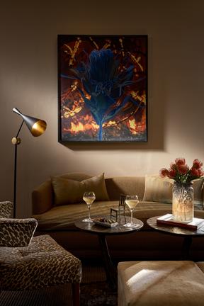 An average size of 70m²/753.47ft², the private suite located separately from the main building has a lounge area with fireplace, and a walk-in closet with sit-down vanity desk. The outside seating area offers views of the tropical paradise-inspired Leeu House pool, and the mountains. Here too is the perfect place to consider sculptor Dylan Lewis’s Leopard On A Rock.