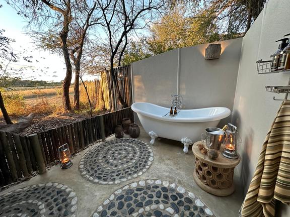 Overlooking the open tree-lined vlei and pan, this rustic gem is a perfect vantage point from which to view wildlife safely, quietly. Just the two of you. Kept simple, as a tree house should be, the bedroom of the Dove’s Nest is reached by a wooden stairway and with a closeable door. You won’t have to forego your hot shower and warm bed and the location is second to none.