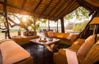 The living area at Nkwali Camp lines the river with a wooden deck that hovers above the high water line in the deep shade of an old and well-nourished old ebony tree. Dinner venues vary from beneath the stars on the deck, beneath the stars and out in the open of the bush and in the cosy dining gazebo.