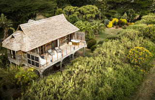 The Greenhouse refracts with light through multiple glass windows and flickers with reflections from the surrounding gardens. Potted tropical plants and succulents enhance the feeling of the outdoors coming indoors. Soft flower-printed linens, layered bedding and green shades create a botanically inspired two-bedroomed house with a double volume shared dining table and lounge. Both bedrooms have elegant en-suite bathrooms and dappled views out towards the wild foothills beneath Mount Kenya. In the morning the whole house is flooded with copper-coloured light as the sun-rises over this wild, untamed landscape. This villa is perfect for a family or two couples travelling together.