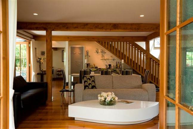 The lodge’s Matai lounge and dining room is the ideal place to relax with friends and fellow guests over a glass of wine or afternoon tea including homemade delights. The lounge is warm and welcoming with leather suites, oriental rugs, flat screen TV, DVD and CD player. A roaring fire in the local schist stone fireplace provides warmth in winter, while air conditioning is available to keep cool in summer.
