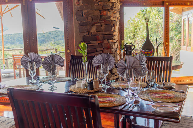 10 Glass and bush enclosed chalets which flow naturally into the African bush veld allowing you to become one with nature. Four poster beds complete with dreamy white mosquito nets and en-suite bathrooms allow you to become one with nature in the lap of luxury. Gauze and sliding glass doors open up onto a private plunge pool, game viewing deck and outdoor shower overlooking breathtaking views of the Zuurberg Mountains.