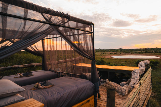 Para aquellos que alguna vez han soñado con dormir bajo el cielo africano, Skybeds ofrece una de las formas más inolvidables de pasar una noche en la selva. Ubicado en lo profundo de la reserva privada de Khwai, en el delta del Okavango, esta experiencia única para dormir al aire libre coloca a los huéspedes en el corazón de la naturaleza. Cada una de las tres plataformas elevadas tiene tres pisos y ofrece vistas a un abrevadero muy concurrido, mientras que la planta superior cuenta con una cómoda cama doble abierta a las estrellas, que te permite relajarte bajo los vastos cielos africanos mientras la vida silvestre se mueve tranquilamente por debajo. Skybeds convierte el safari en algo hermoso y elemental: el sonido de los arbustos, el resplandor del fuego y un millón de estrellas en lo alto. Atención: las camas rascacielos solo se pueden reservar en combinación con una estancia en Elephant Pan, Tuludi, Sable Alley o Little Sable, dentro de la reserva privada de Khwai.