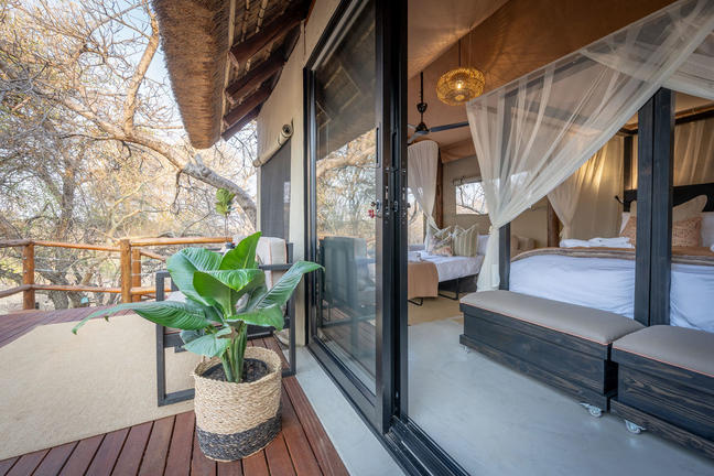 Occupant une aile séparée de la Villa Mhlabeni, ces 2 chambres sont communicantes et donnent sur le jardin. Chaque chambre est équipée de la climatisation, d'un minibar et d'un plateau/bouilloire. Les lits sont dotés d'une moustiquaire et la salle de bains privative est pourvue d'une baignoire, d'articles de toilette locaux et d'une douche extérieure. Un lit d'appoint peut être installé. Les clients auront le petit-déjeuner, le déjeuner et le dîner sur leur terrasse surélevée privée.