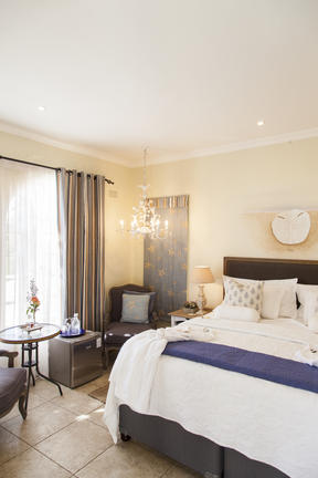 Découvrez le luxe à son meilleur dans nos suites de luxe opulentes avec patio commun. Profitez d'une atmosphère sereine avec un choix de lits king-size ou de lits jumeaux. La salle de bains privative comprend une douche à l'italienne, des toilettes, un lavabo et des articles de toilette. Les équipements comprennent une télévision avec Showmax, une machine à thé/café, une connexion Wi-Fi gratuite, un bureau, un minibar et la climatisation/chauffage pour un confort ultime.