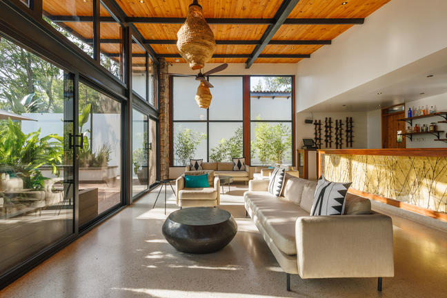 The interiors emphasise local design and handcrafted details adorn the carefully planned spaces. Layered textures and colours enhance the reflective quality of this tranquil haven and an experiential enclave offers free-flowing indoor and outdoor areas. A convivial fire pit, interactive kitchen, bar-deli and wine cellar complete the picture.