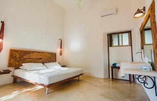 Hacienda Sacnicte is located just outside Izamal, Yucatán, a town known for its colonial architecture and archaeological sites such as the Convento de San Antonio de Padua and the Kinich Kak Moo pyramid. The rooms feature air-conditioning, private bathrooms, and Wi-Fi. Dining is available at the on-site restaurant, which serves a variety of regional and international dishes. Leisure facilities include a swimming pool, dry cenote garden, and shaded hammocks.