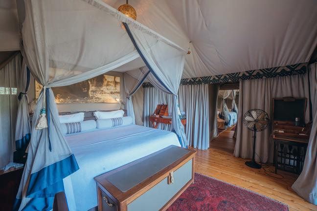 Balcony / Deck, Bath Towels, Complimentary Wi-Fi, Dressing Gowns, Electrical Outlets, En Suite Bathroom, Family Safari Tent, Hairdryer, Internet Access (Complimentary), Laundry Service (Complimentary), Mosquito Nets, Mosquito Netting, Pure Cotton Linen, Queen Bed, Safe, Shower, Tea / Coffee, Twin Bed, Verandah, Wardrobe