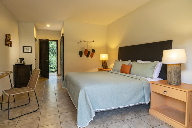 This charming cabin room is conveniently located near the main lodge and features a King bed along with a single bed. For families or groups traveling together, it can be combined with room Motmot to create an adjoining space, offering both privacy and proximity.