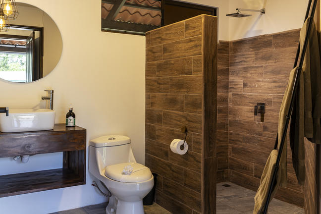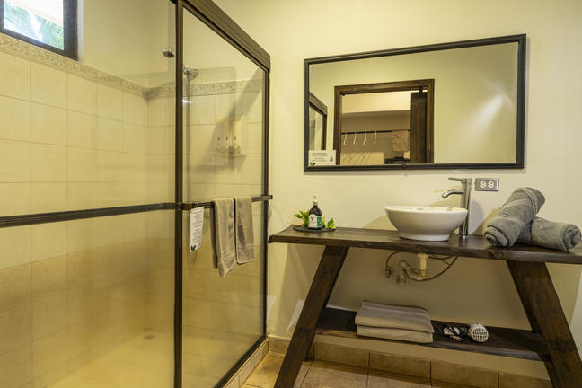 The 10-15 minute walk from the reception area is along a lit and almost completely covered walkway making a very enjoyable, scenic walk via the botanical garden and secondary forest trails. In addition, our Costa Rica eco lodge has vehicle support for luggage transfers and other times when walking would not be advantageous.
