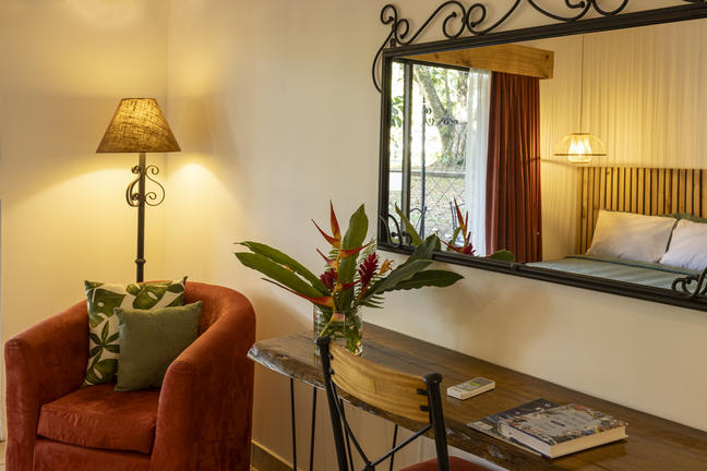 Crisp, clean and confortable beautiful rooms, surrounded by immaculate landscape grounds, with lots of birds, and usually with the sudden visit of monkeys, keeping you busy taking pictures, enjoying wildlife or just relaxing.