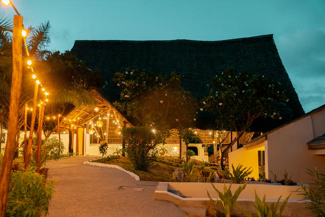 Mafia Island Lodge, located in Utende, Mafia Island, Tanzania, offers a serene escape with stunning sea views. Guests can choose from various room types, including sea view rooms and garden rooms, all equipped with modern amenities such as air conditioning and a ceiling fan. The lodge features an expansive infinity pool, lush gardens, and a restaurant serving local and international cuisine. Guests can enjoy activities such as diving, snorkelling, and whale shark watching, making it an ideal destination for nature enthusiasts and adventure seekers.