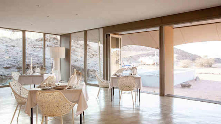 Wild Camping Hoanib est situé sur la rivière Hoanib, dans la partie nord de la concession privée de Palmwag. Le camping entièrement alimenté par l'énergie solaire dispose de 8 grandes tentes avec salle de bains privative, d'un espace commun principal et d'une piscine avec vue sur la vallée qui descend jusqu'à la rivière Hoanib presque toujours sèche. Les clients peuvent faire l'expérience de jeux de jour comme de nuit qui explore la zone isolée, se déplaçant le long de l'étroit ruban de végétation du lit de la rivière, où une richesse surprenante d'animaux adaptés au désert peut être trouvée et visiter la côte des squelettes impitoyable, avec ses restes de naufrage et ses colonies bruyantes de fourrure du Cap. scellés.