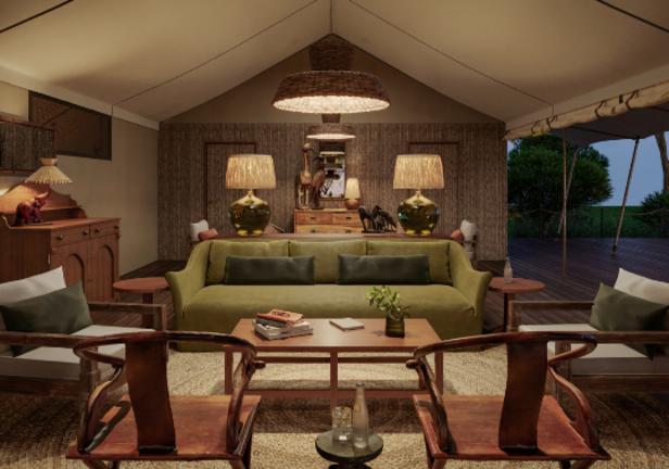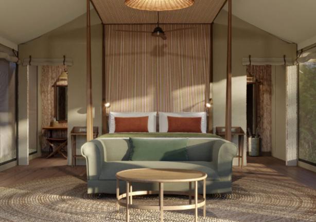 The family tent is made up of one tent (55sqm) with 1 x queen size wrought iron bed, with a indoor as well as an outdoor shower, small lounge area and on the opposite side 2 x 3/4 beds with a private indoor shower. There are overhead fans above the beds, charging stations as well as a deck with a private seating area