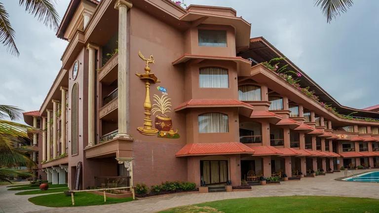 Uday Samudra Leisure Beach Hotel is a five-star beachfront resort located in Kovalam, Kerala. Just steps from Samudra Beach, it is also close to attractions like the Lighthouse Beach and the historic Padmanabhaswamy Temple. Rooms feature air conditioning, free Wi-Fi, flat-screen TVs, minibars, and private balconies. Guests can dine at five on-site restaurants offering Indian, Chinese, and continental cuisine. The hotel boasts three swimming pools, an Ayurvedic full-service spa, and seven banquet halls, making it ideal for both relaxation and events.