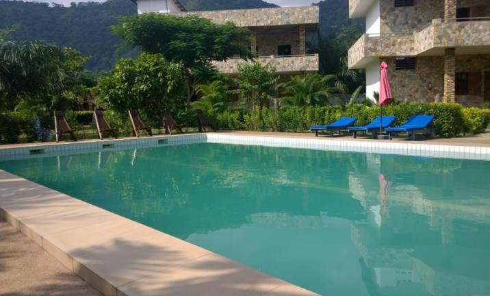 Located about two kilometres from Kpalimé, Hotel Parc Residence provides comfortable accommodation surrounded by nature. The rooms are spacious and feature air conditioning, a small living room, a TV, a refrigerator and a bathroom with a solar water heater. Other amenities include secure parking space, security, a terrace and a garden area. There is also a swimming pool where guests can cool off after hiking in the mountains.